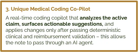 Automates coding, documentation, and superbill generation,